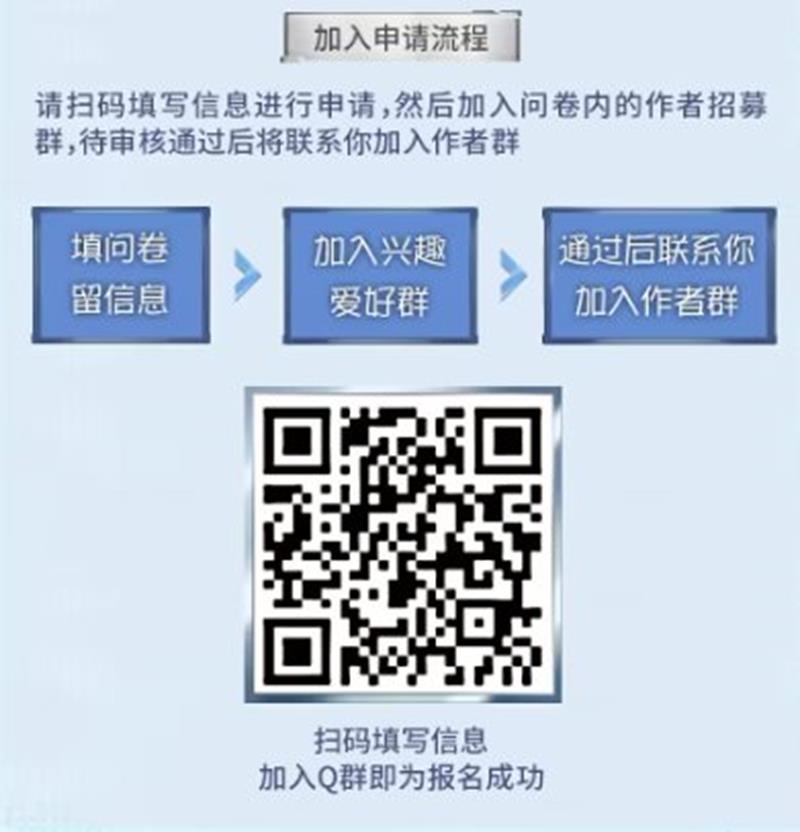 加入问卷内的作者招募群,待审核通过后将联系你加入作者群。