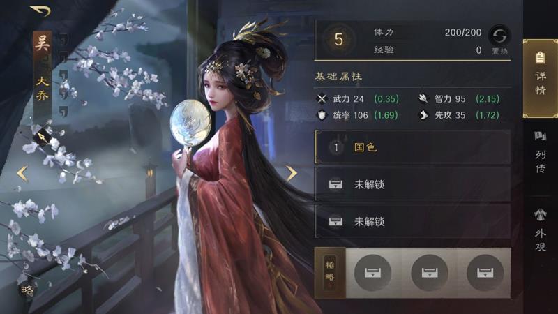 而作为辅助武将的大乔,其核心技能"国色"具有双重效果。每个回合开始时,能随机使两名敌方单位受到的伤害提升10%-20%,同时为我方随机两名武将恢复兵力,治疗率从90%提升至180%。这个技能兼具削弱敌方和支援友军的双重功效。