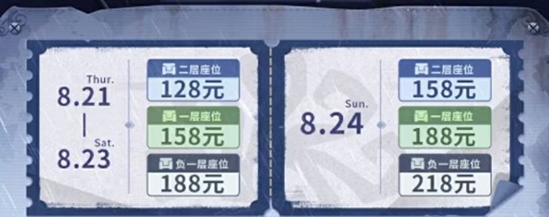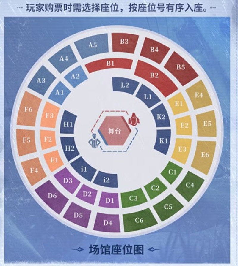 玩家购票时需选择座位,按座位号有序入座。成功购买门票的访客们可参与8月17日开启的对应活动日期的周边购买资格预约(限5500人),但不代表必定获得购买资格,只有成功预约周边购买资格的访客方可参与活动日现场购买。