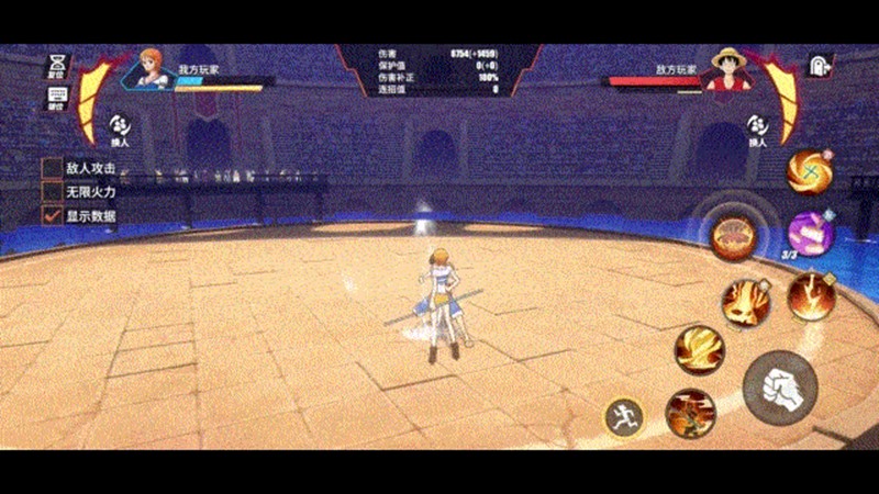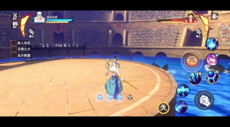 路飞作为近战主力,可以用橡皮机关枪先手控制敌人;