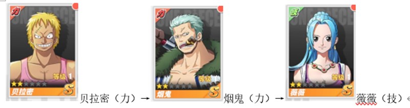 新手阶段推荐使用路飞、佐罗和奈美的组合。这套阵容包含了力、技、心三种不同属性的角色,在面对各种对手时都能发挥属性克制的优势。