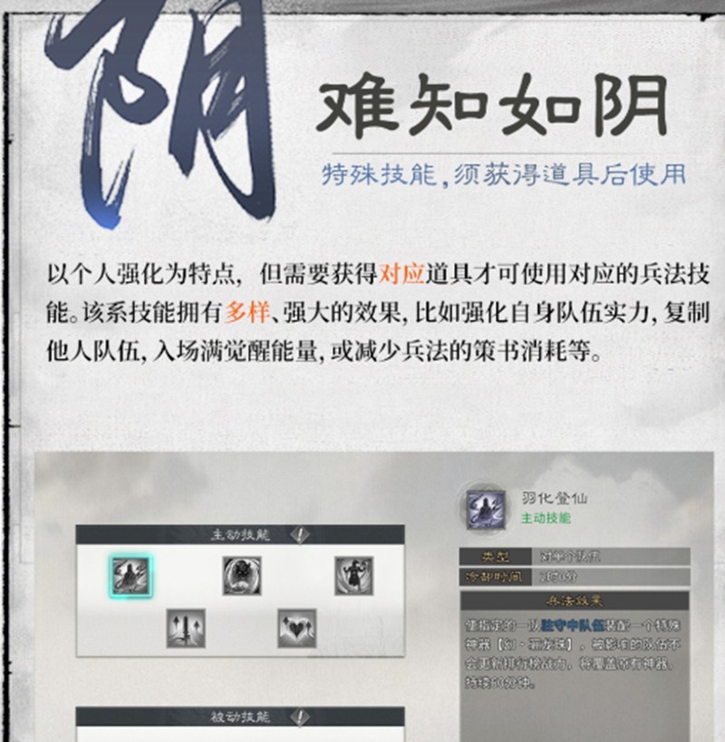 难知如阴是高手向的特殊兵法,需要收集特定道具激活。它能复制敌军主力、降低消耗等,适合单支精锐部队使用。这个兵法往往能在劣势局面下实现精彩翻盘,是战术反制的利器。