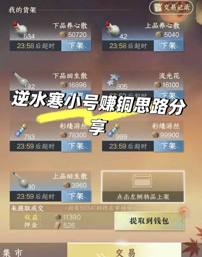 难就在起号最开始,后面只要准时卡点上架,第2天上线收就行,做药和做菜就几秒钟,后面操作远比前面轻松,如果只是买礼盒买宠物什么的,月入百万铜也不是可能哦