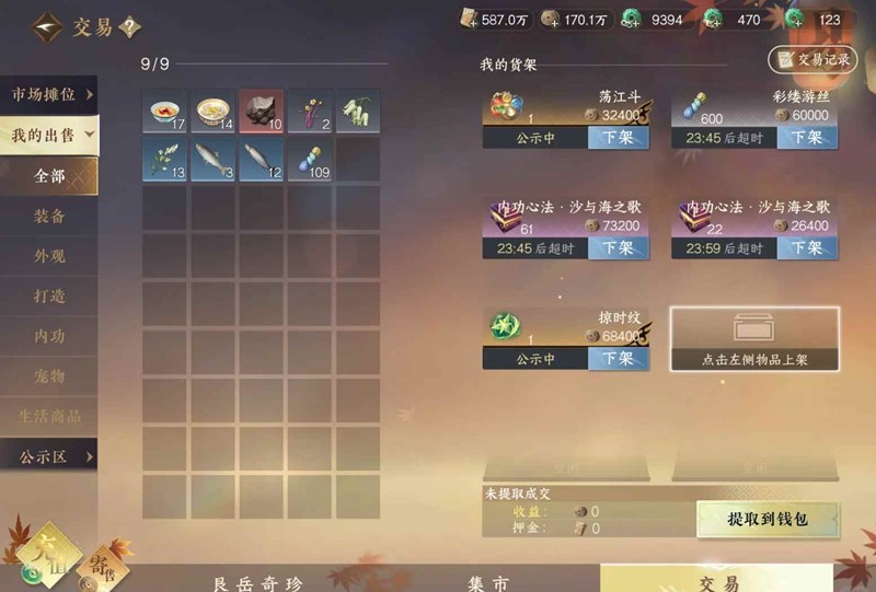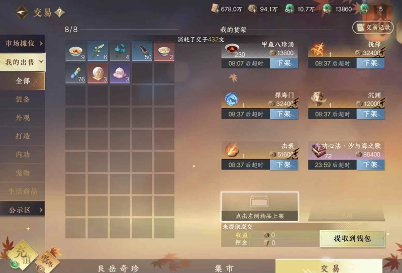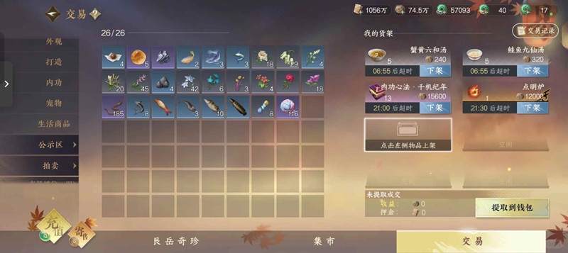 有铜币基础之后,可以搓丝,稳定是做菜做药,我每天准时上架商品,活力溢出来部分做菜补药,铜币每天大概在20万~50万区间(包含制作成本)