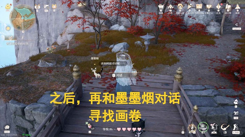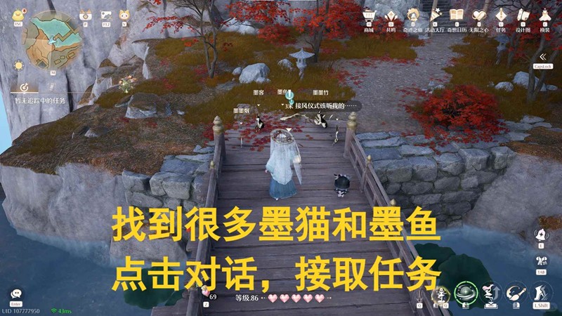 找到很多墨猫,墨鱼,和它们对话,接取任务;