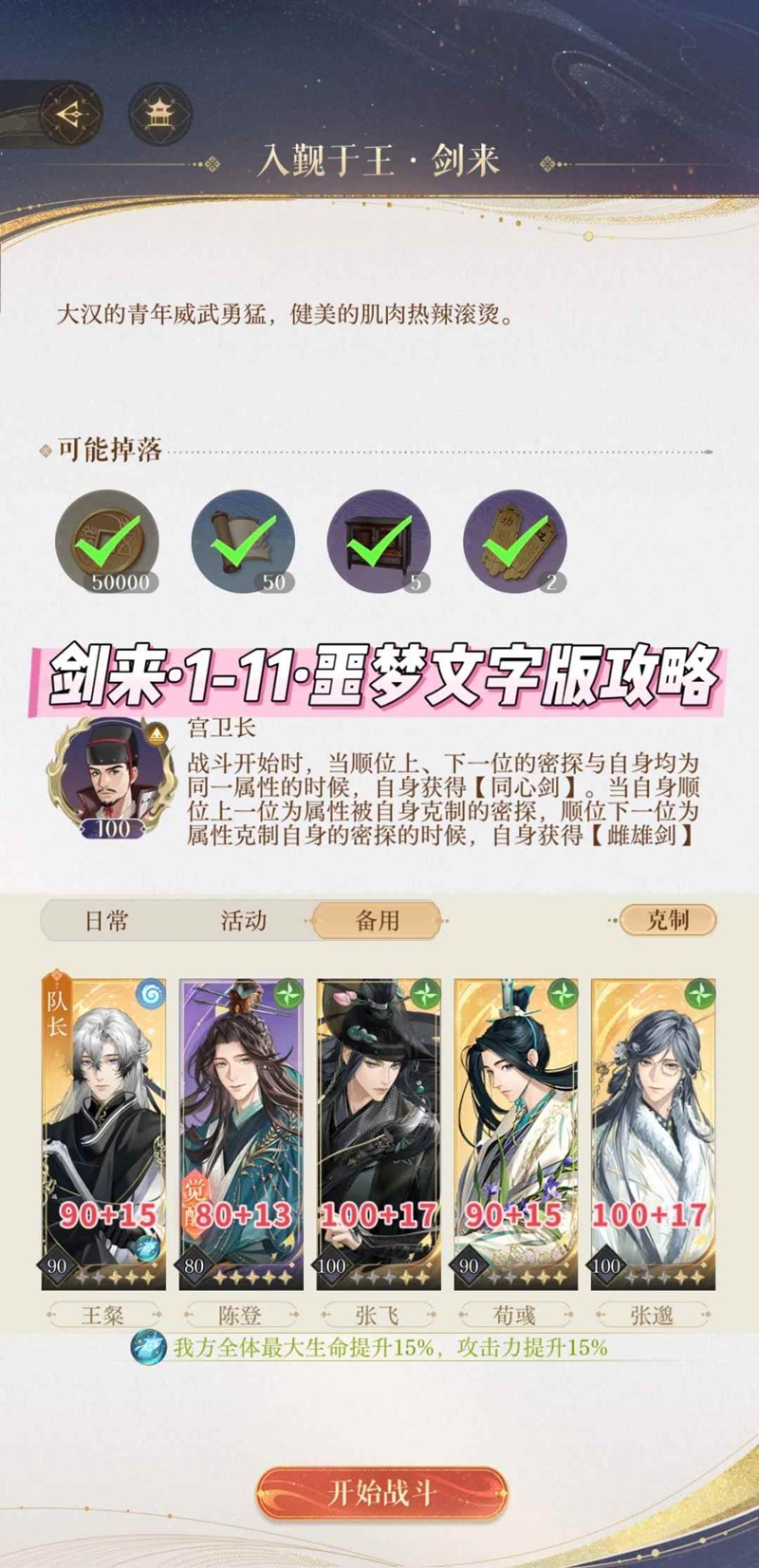 2. 伤害不够王粲可以带受伤盘,或者张飞当队长,注意不要把4个同属性的密探拆开放
