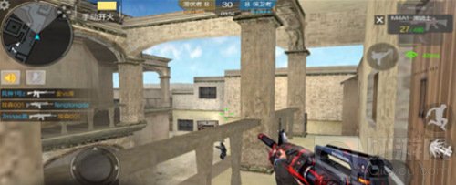 同样地图当中也有很多的阳台值得利用,站在阳台上方依靠柱子作为掩体,对下方的敌人进行点射,效果也是相当不错的,看到时机成熟可以空降奇兵。