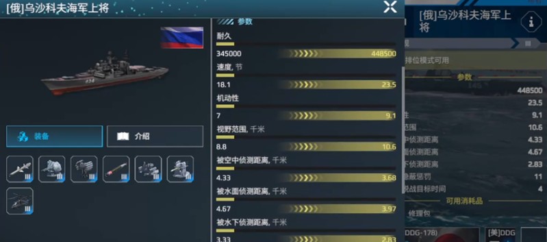乌沙科夫护卫舰各项能力均衡,防空、反潜、近战、远程攻击样样精通。虽然单项能力不算顶尖,但全面的性能使其能适应各种战场环境,特别适合刚进入高级房的玩家使用。