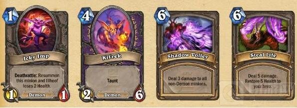 6费,对所有非恶魔随从造成3点伤害。英雄难度下为4费。