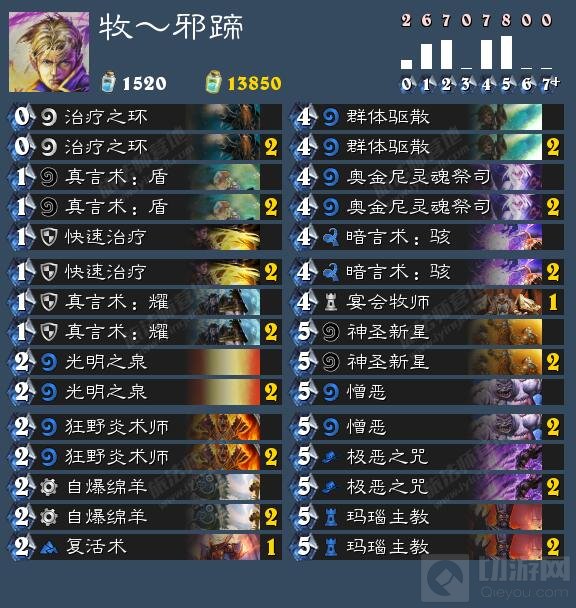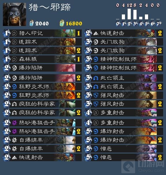 不过上面的牌表太壕了不太友好,这里我们推荐另一个思路,圣骑士狼人OTK,苟住场面疯狂过牌,狼骑兵斩杀