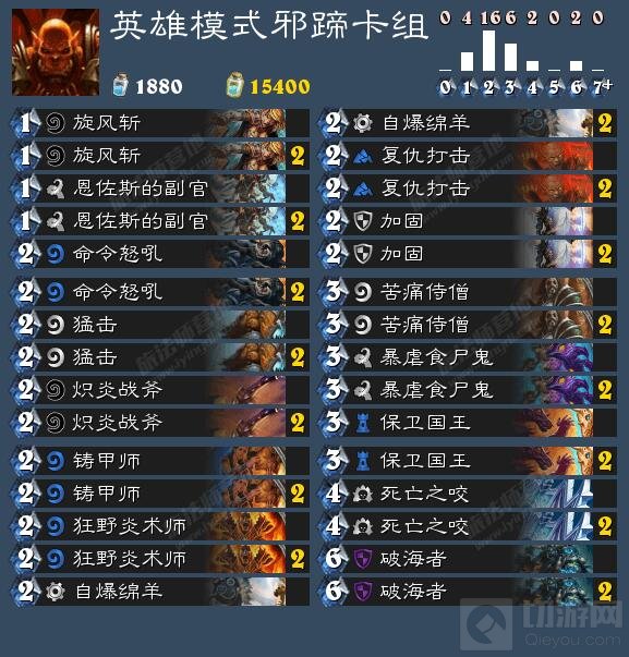 英雄模式下粗鄙小鬼变成2/2,还是和普通模式一样选择AOE多的战士,很方便。自爆绵羊以及复仇打击都可以打出成吨的伤害,不过炎术士配合命令怒吼是非常关键的一波输出点。利用好上述的几个点,过英雄模式依旧没什么太大的难度。保卫国王配合加固则是强行逼迫对面与己方交换而已。
