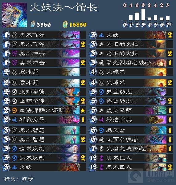 英雄难度下馆长开始发威了,40血+15甲铺场快了一回合,为了解决起手的尘魔,火妖法者是不错的。