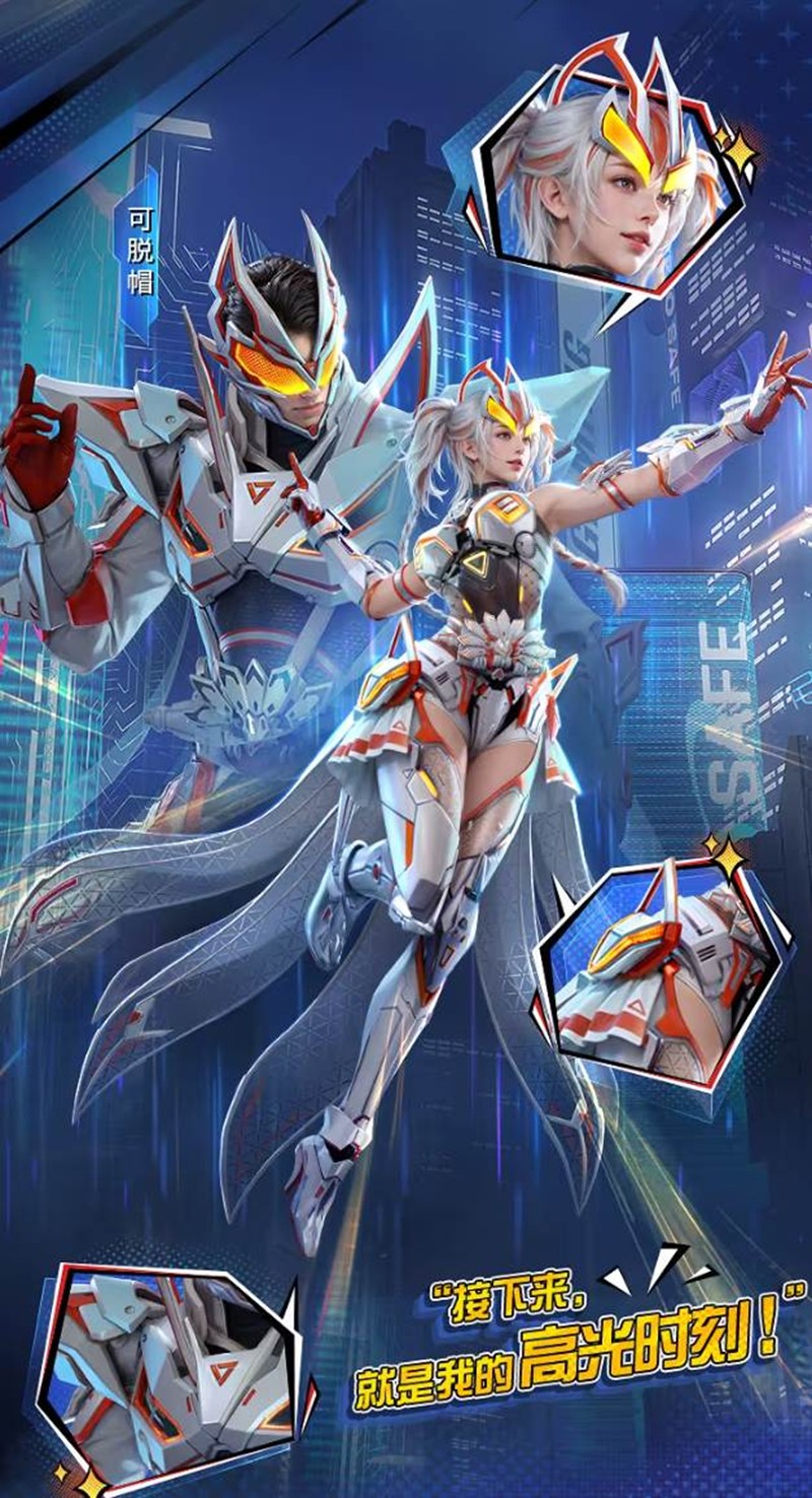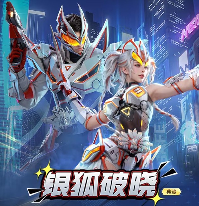 随着【银狐破晓】时装的登场,同系列武器外观【极狐破坏者】&【极狐终结刃】、联动背包【九尾蓝焰】、可变形联动载具【推进先锋】、主题头饰【极狐愿力】也同步上架。