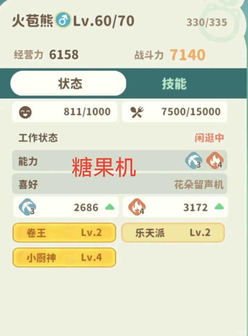 让『小红尾』与『火苞熊』约会,『火苞熊』继承【4级小厨神】