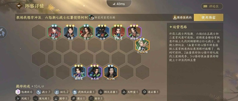 推荐三星三费:冷血(搭配四刺),刀狂(搭配心悟),高衙内(搭配五辅),曲星河,楚相玉,凤千锦,红莲
