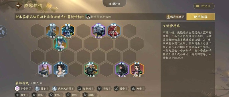 非命阁。变阵四力六射手。非命阁再加强墨荷加强,傀王又回来了,且同行较少。前期堆射手或三星心悟墨何血甲或御剑。四射不是刚需灵活变通,但二星凤姐吃鸡必备。推荐心悟:射手转非命转非命心悟墨荷心悟
