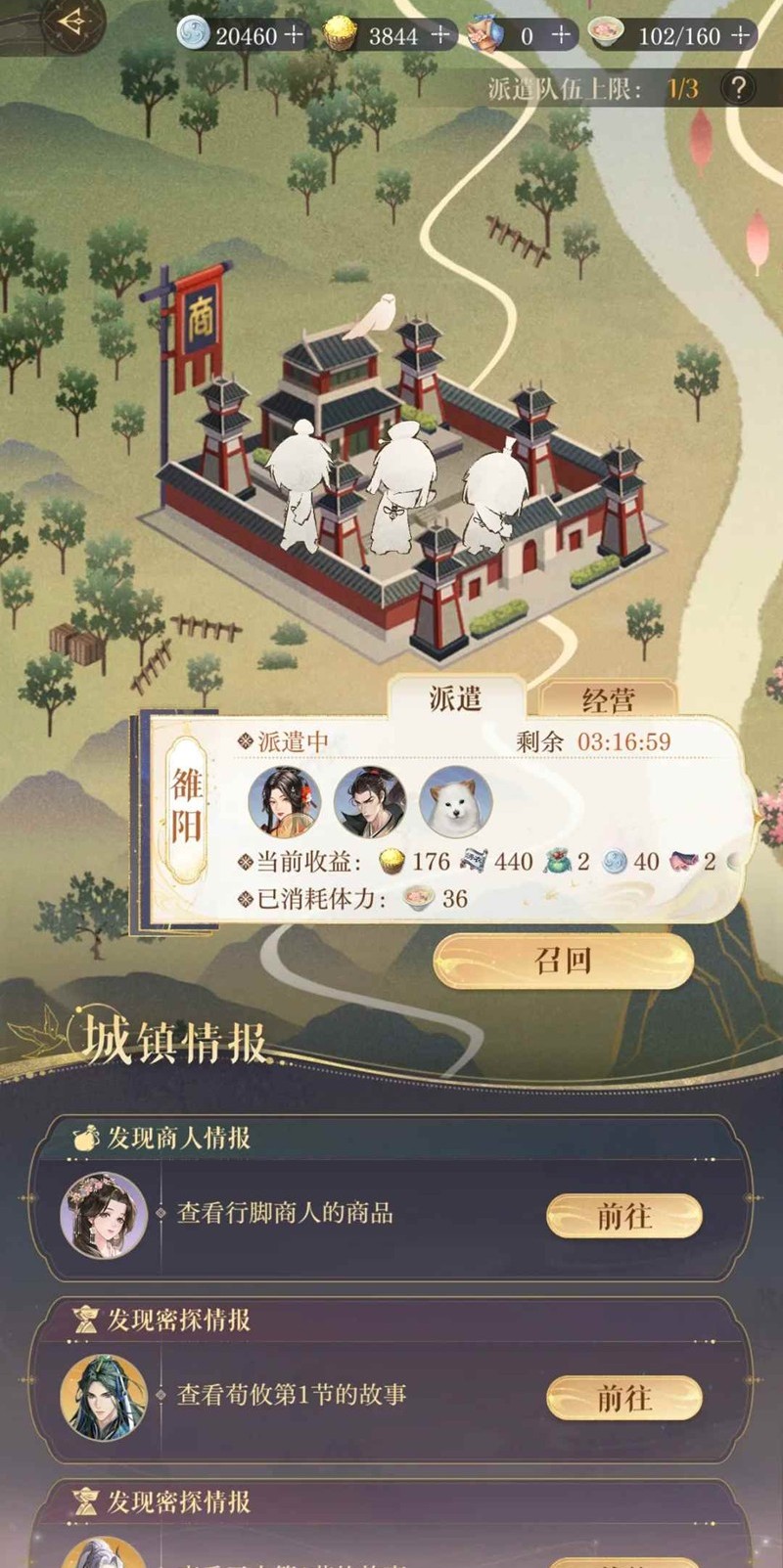 1.洛阳每天派满!零氪最重要的白金币来源,且产出鸟食,突破材料和蛇肉都对战力有很大提升!寿春建议排在密探养成之后,即主线通关/密探养成80-90级以后每天派遣4-8h。