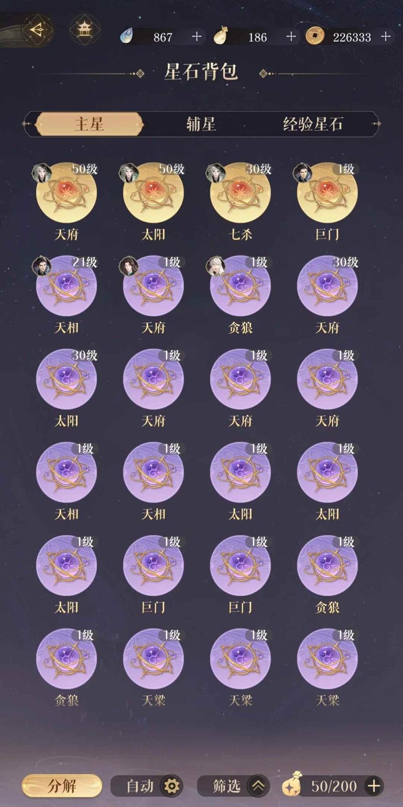 5.星石是最廉价且平民,也是最快的提升战力方式。命盘和叠星需要运气,但星石只要抽到就是提升(当然不否定抽星石也需要很大的运气)多刷624多观星。命盘洗到核心就停手,零氪是没有善恶簿买的,不要强求。