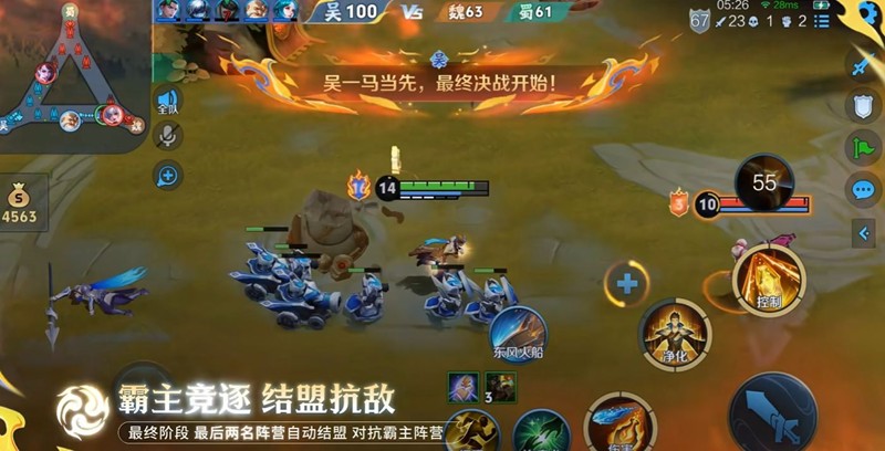 血战华容是王者荣耀推出的全新5V5V5三方阵营对抗玩法。游戏分为魏、蜀、吴三大阵营,每阵营各有五名英雄出战。地图呈三角形布局,三方基地呈鼎足之势,阵营之间相互制衡。