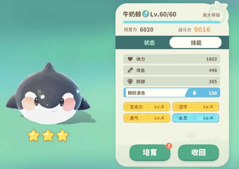 2用极品咬尾豹+带有水灵 4 的牛奶鲸合成极品(闪闪)夜梦鲸(因为牛奶鲸只能+咬尾豹或夜梦鲸合,所以先合成带有勇气 4 坚守 4 生命 4 的咬尾豹最佳)