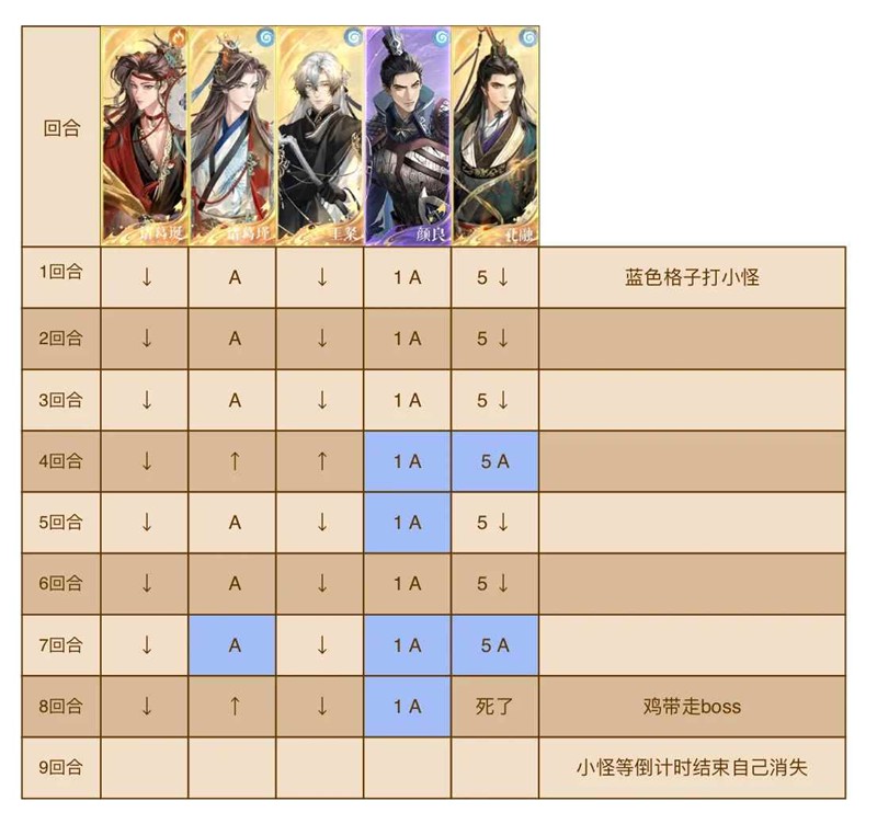 1. 孔夫子平a是多段攻击,有他的话带两个水密探就够了;包元盘血最高的先行动,孔夫子最后行动。