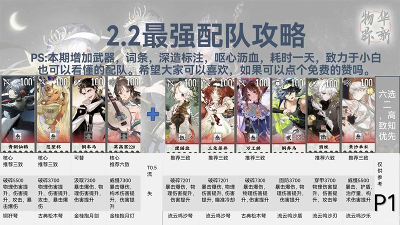 PS:本期增加武器,词条,深造标注,呕心沥血,耗时一天,致力于小白也可以看懂的配队。
