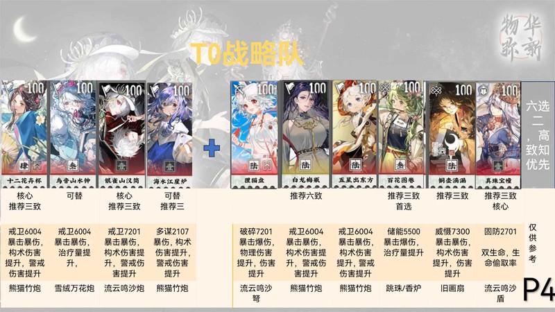 主流玩法,控制输出一体,操作简单,海水江崖炉有的时候需要放到其他队伍,所以白龙鸟音等都可以,建议带一名远击对策远程,百花可以提高队伍伤害,铜壶其实不如书记在队伍里面提升,真珠可以提高队伍生存,适配效果嘎嘎爽。战略异变用了都说好,6-22对策配队。。