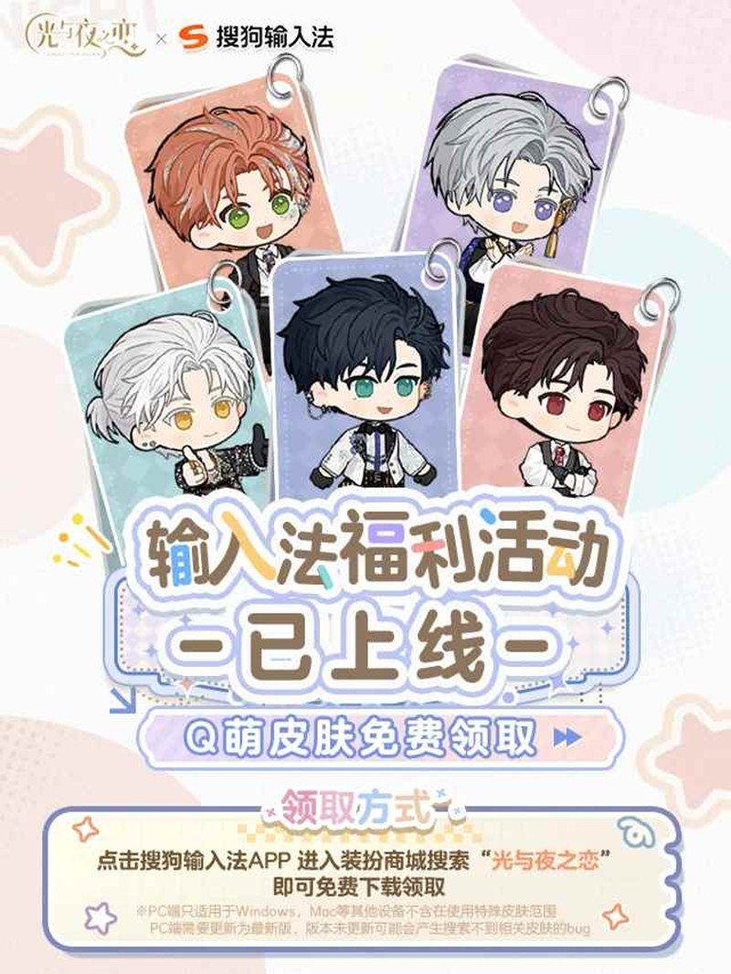 以上就是光与夜之恋 × 搜狗输入法联动,Q萌皮肤免费领的全部内容了,更多游戏资讯,攻略内容敬请关注切游网,您的支持是我们努力的动力!