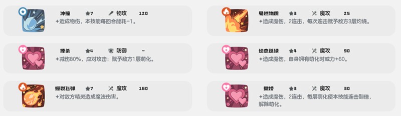 火苗技能在造成物理伤害的同时还能积攒能量点,为后续强力技能做准备。拍击则是魔法伤害技能,防御技能可提供80%的减伤效果。猛烈撞击和碰爪都是强力的物理输出技能,让治愈兔在辅助之余也具备一定的输出能力。