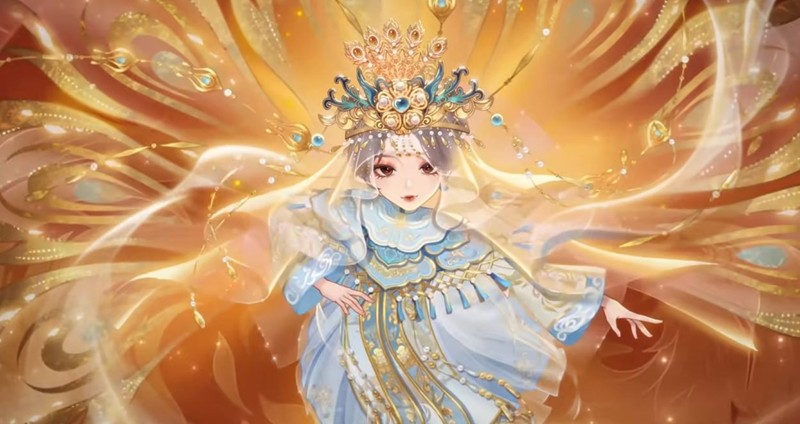 第一种形态下,巫铃儿身着华丽的礼服,周围环绕着梦幻般的光影效果,仿佛置身于一个神秘的梦境之中。