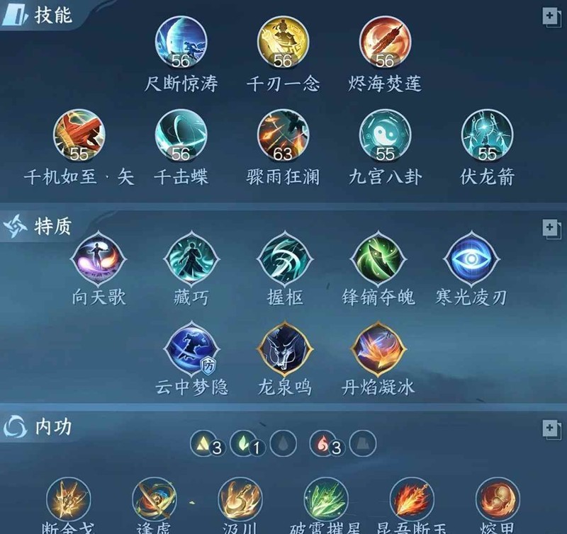 内功:破霄摧星、断金戈、汲川、昆吾必带
