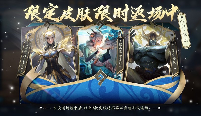 【限定皮肤限时返场】瑶-山海·碧波行、露娜-启示之音、墨子-降魔