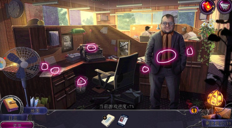 酒馆关卡要求玩家先找到记者证交给同事换取钥匙。用钥匙打开抽屉后能获得播放按钮和刀片。办公桌上的美工刀和铅笔可以帮助解开密码,柜子里的胶布和箱子是后续解谜的重要道具。酒吧区域的寻物游戏相对简单,最终目标是拿到房间钥匙。
