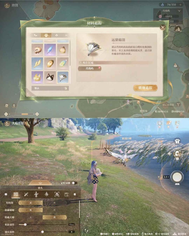追踪一下「远黛扇羽」材料,拍一张折扇白鹭的照片即可(怕白鹭飞走就先清洁一下)