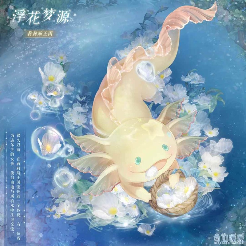 8月15日—8月21日,使用钻石或“梦源之引”收集材料“莹白花瓣”、“轻粉花瓣”、“水蓝花瓣”。帮助伙伴们收集指定数量的材料,即可获得钝口螈主题套装【浮花梦源】的限定部件。