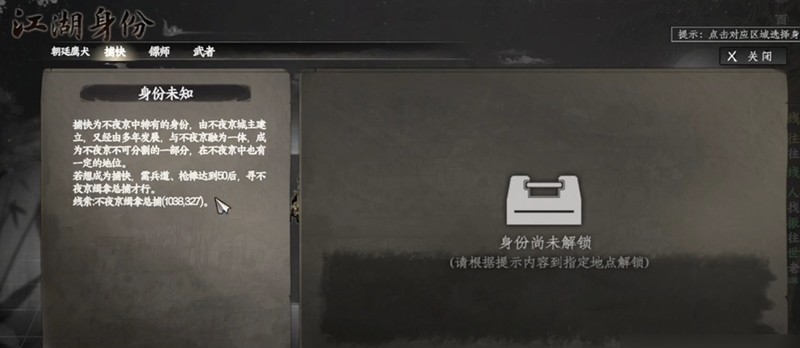想要加入下一站江湖2不夜京,首先需要获得捕快身份。玩家需要前往坐标位置找到NPC赵长歌进行对话,开启捕快身份考核。这个门派特别注重冰道和枪棍的修炼,入门要求这两项武学达到80点以上。随着身份等级的提升,后续晋级为内门弟子、关门弟子乃至名捕时,对武学数值的要求会逐步提高。