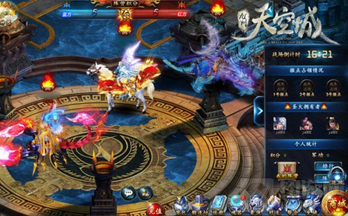 《九州天空城》全新跨服PVP玩法-圣火神殿是一个集合了即时冲突,抢占据点,还有随机攻防机制的大战场,多样化的战斗满足你PK的激情。圣火神殿根据红蓝双方积分来判定胜负。