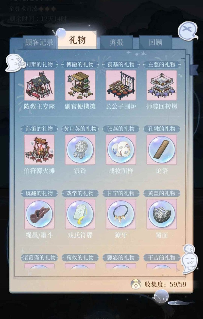 4、有些魂魂在图鉴里会显示被xx家具吸引,实测下来感觉拉满最高级就不用担心魂魂不来。例如张邈会被鸮足烤炉吸引,但是直接装备幽光烤炉的话,也是会来的,前提是店铺要达到要求的星级。