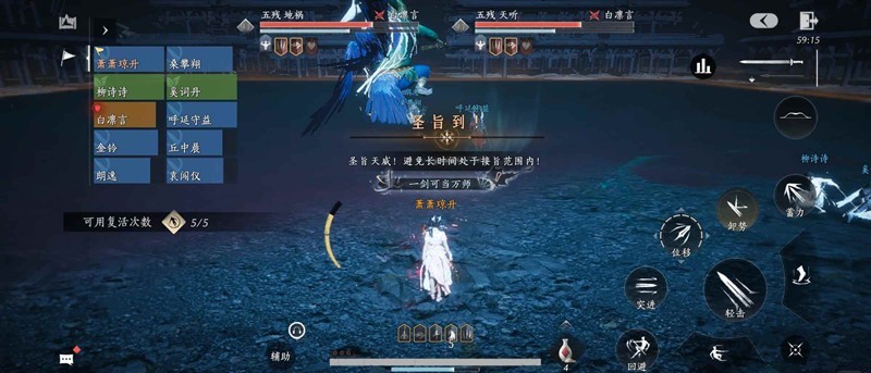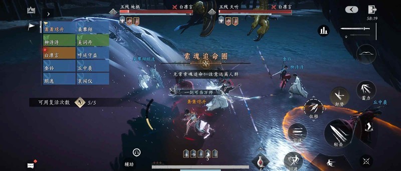 5.飞羽追魂:五残锁定两名玩家持续发射鸟羽,那两名玩家各自跑到两幅圣旨后,等技能结束后鸟羽划破圣旨即可