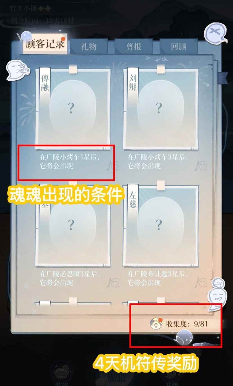 重复服务顾客,可以提高顾客好感度.顾客好感度满解锁增礼,获取礼物图鉴奖励,服务美食家,获取剪报,比如陈登