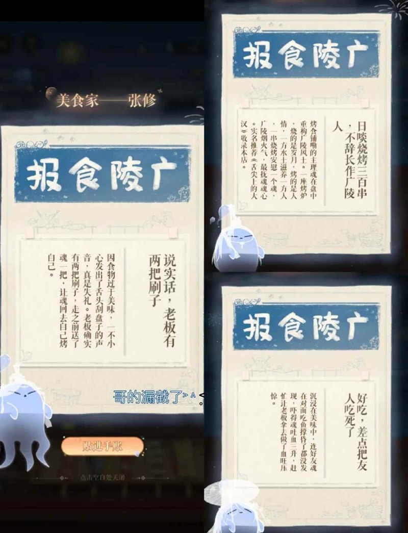 然后关于先拉装修还是先拉升级,早起升级耗蓝券低,可以尽管升级,但到广陵必思啜后蓝券耗材提升,这时候可以考虑装修一个小件叠加成,【坐垫】【餐盘】【托盘】的第一个都可以按需选择,然后继续升级到广陵布让匙1星,这时候可以多解锁一个炉子,用于应对有时候会出现的需要生的串或糊的串任务