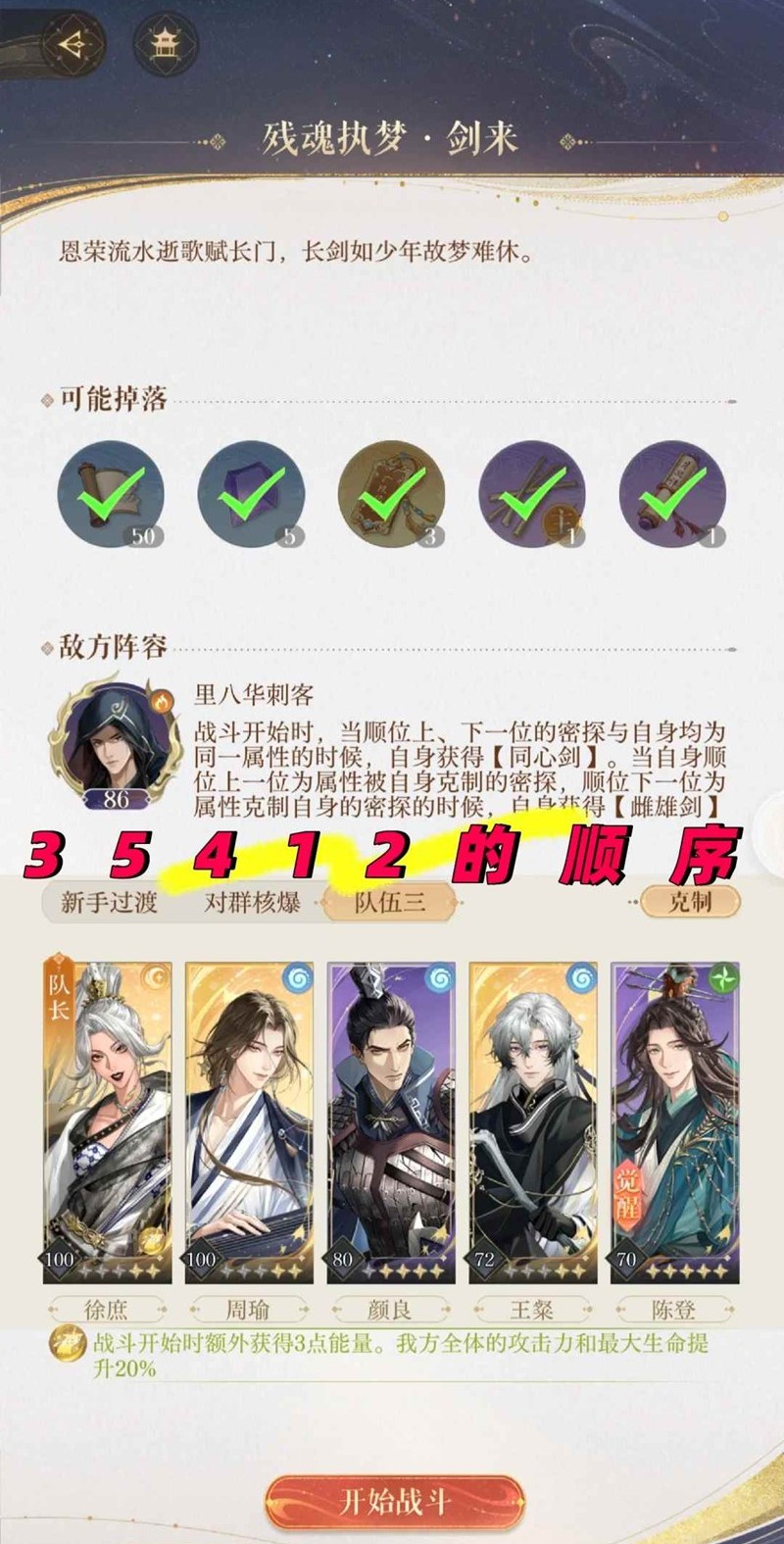 第二,如果密探练度不够,可以慢慢磨刺客头头的血量,前提是三个人都不能死才可以磨头头的血量(如果上的密探和我一样的话)