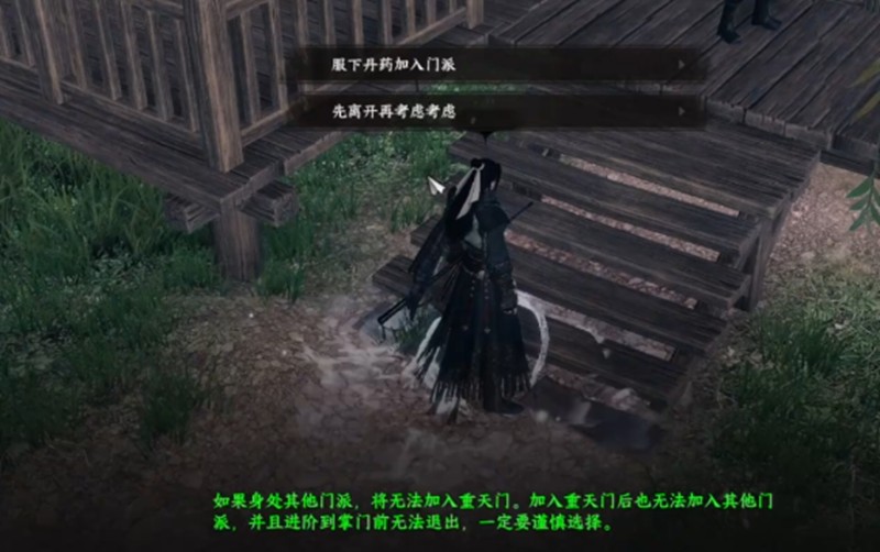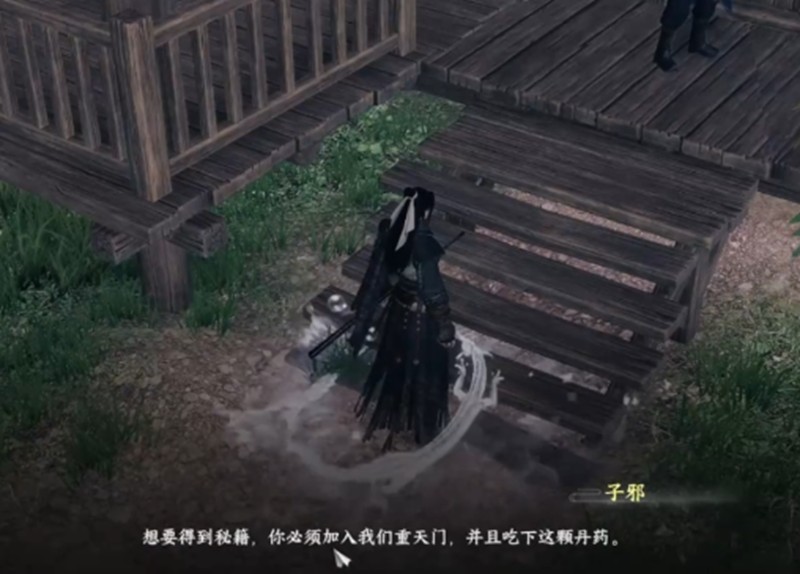 当道德值达标后,玩家需要前往黑石崖区域寻找被藤蔓覆盖的隐蔽洞口。洞口附近会有手持弯刀的守卫巡逻,道德值达标时守卫会放行并指引至内部广场。在广场中央的石碑处阅读门规后,会触发与子邪的对话。对话中要选择符合重天门理念的选项,比如"力量即真理"、"愿入魔道"等。最后需要服用子邪提供的蚀心丹完成入门仪式,虽然会暂时降低属性,但能获得重天门印记这个重要道具。