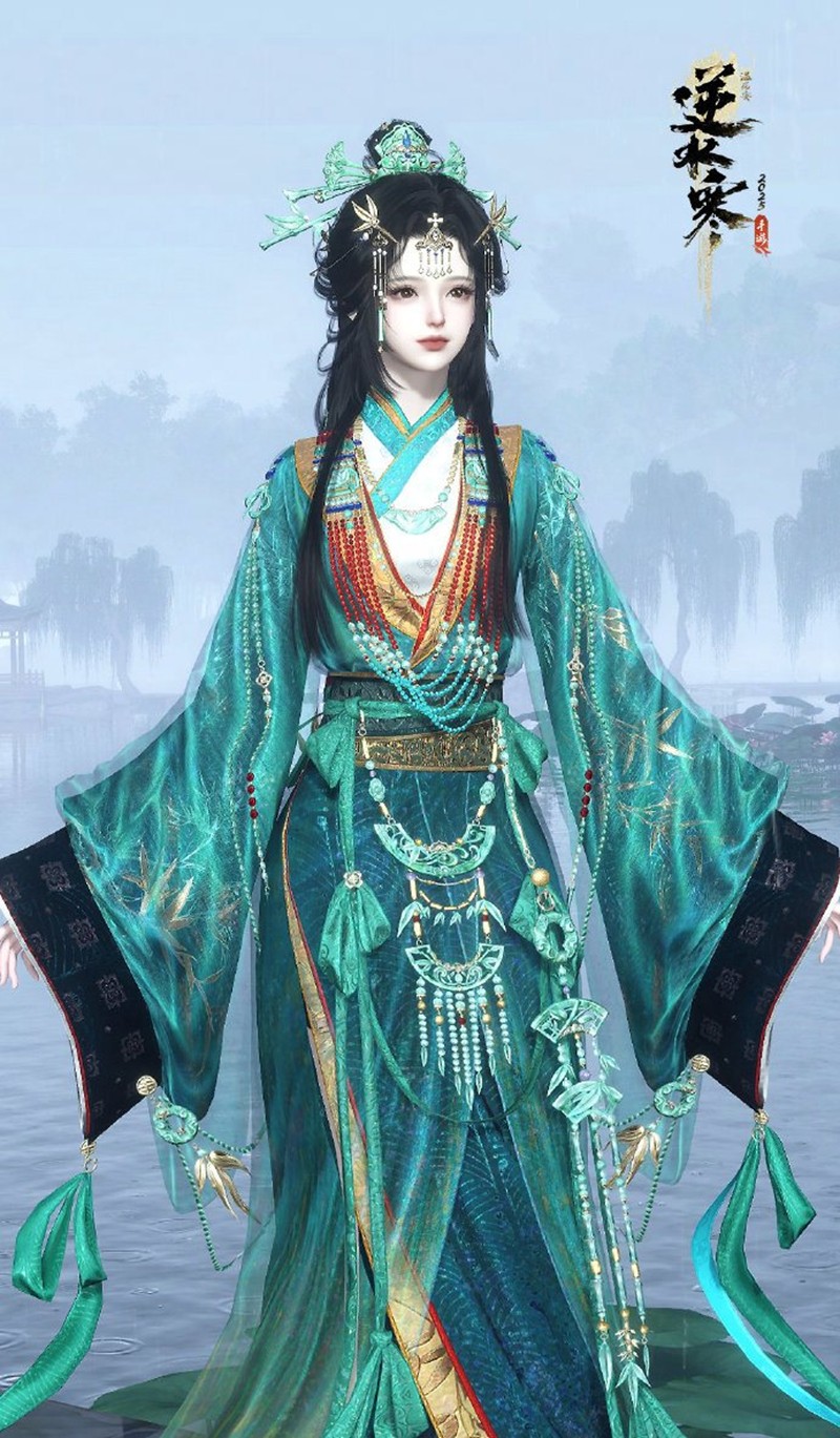 而“丹青故筠”时装的设计灵感源自中国传统文化中的“四雅”——琴、棋、书、画。时装以挂画为主题,将古典艺术与现代游戏元素相结合,展现了独特的东方韵味。