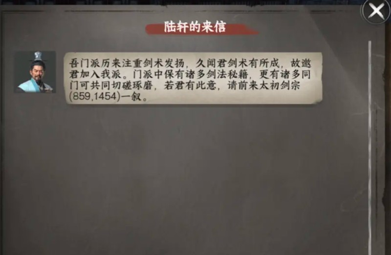 想要加入太初剑宗,首先需要满足50点剑术的基础要求。达到条件后会收到飞鸽传书,邀请前往叙旧。找到NPC陆轩后选择入门拜师,接着完成剿匪支线任务。无论对话如何选择,击败敌人后就能触发新剧情,正式开启门派生涯。