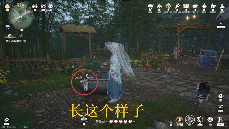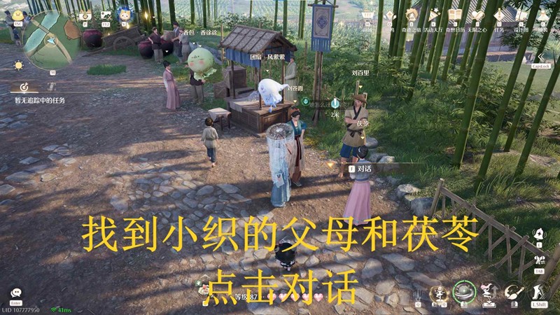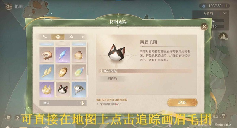 和小织对话,帮她找两份画眉毛团(画眉毛团可以点击地图追踪可得,如果没有解锁,可先传送到 墨缘坊市 锚点,正前方就有一只猫猫,清洁后,就可以解锁地图追踪啦)如果有两份,直接和小织对话;