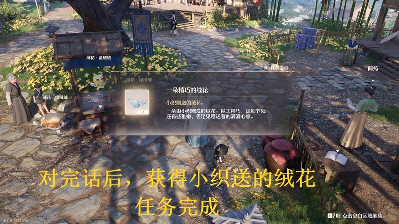 完成引荐后,任务完成,获得小织送的绒花( •̀ ω •́ )y