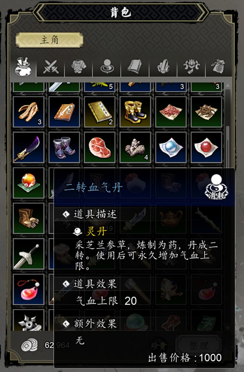 游戏中的丹药种类繁多,包括气血丹、洗髓丹、清灵丹、血灵丹等,每种丹药都能提升不同的属性。主角作为队伍的核心战力,建议优先服用所有能提升基础属性的丹药。特别是血灵丹这类增加血量的丹药,对主角的生存能力提升非常明显。