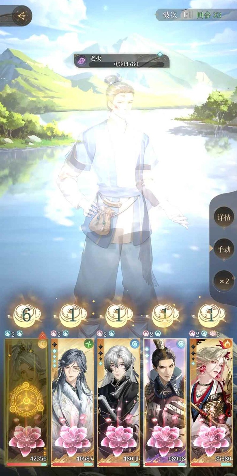 杨修大招也有数字,会从数字开始顺序攻击5次,攻击依次行动的密探,如数字3,会以34561的行动顺序攻击,且攻击伤害递增,按血量高低34561顺序出手,例如颜良血量最高,就第1个行动,张邈血量最低就第3或者第2个行动,依次排序