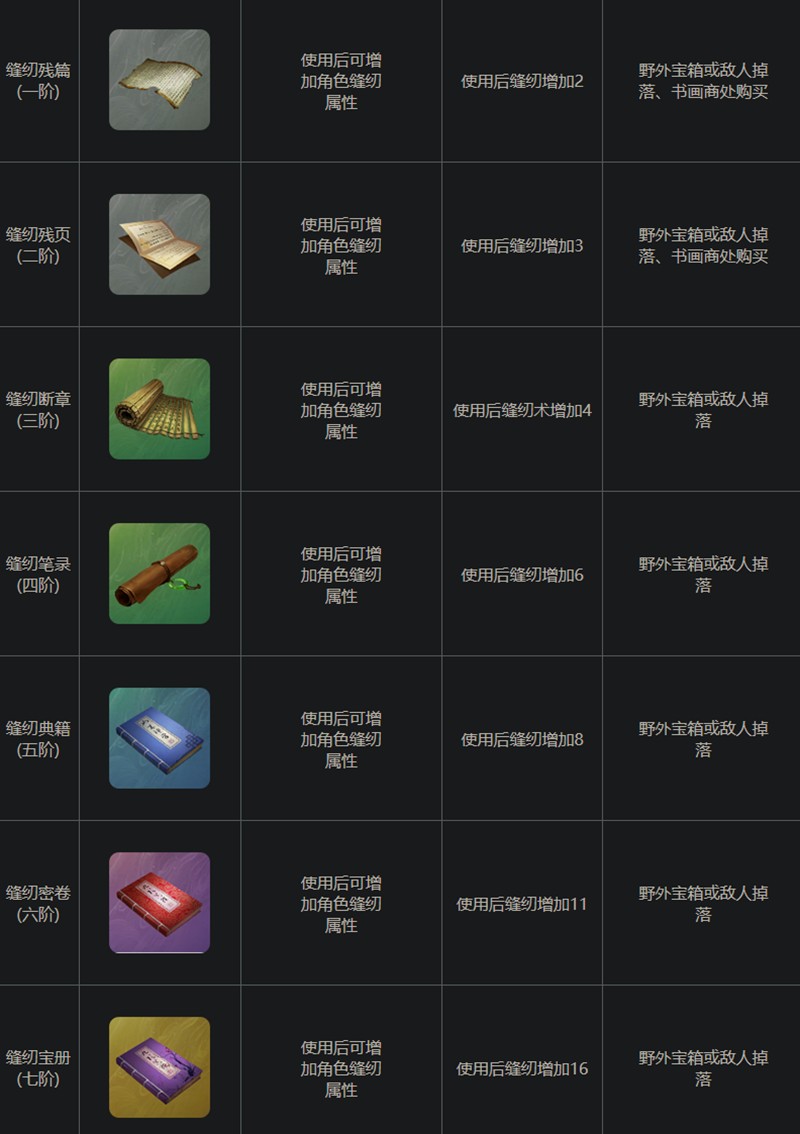 缝纫断章是下一站江湖2缝纫系列秘籍中的第三阶段道具,使用后可以永久增加4点缝纫术。该系列共有7本秘籍,包括残篇、残页、断章、笔录、典籍、密卷和宝册。缝纫断章属于绑定物品,无法与其他玩家交易或摆摊出售。